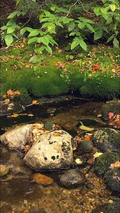 Pools of water and pools of dappled light reflect an otherwise unseen sky in this deeply shadowed summer canopy. While a small waterfall establishes the flow of clear water, it is reflection that reveals the surface motion of water and trees above, both moving in the gentle and occasional breezes of an early summer day. The sound is that of continuous flowing water and singing birds. Cameo appearances of butterflies, insects, and a wild turkey.